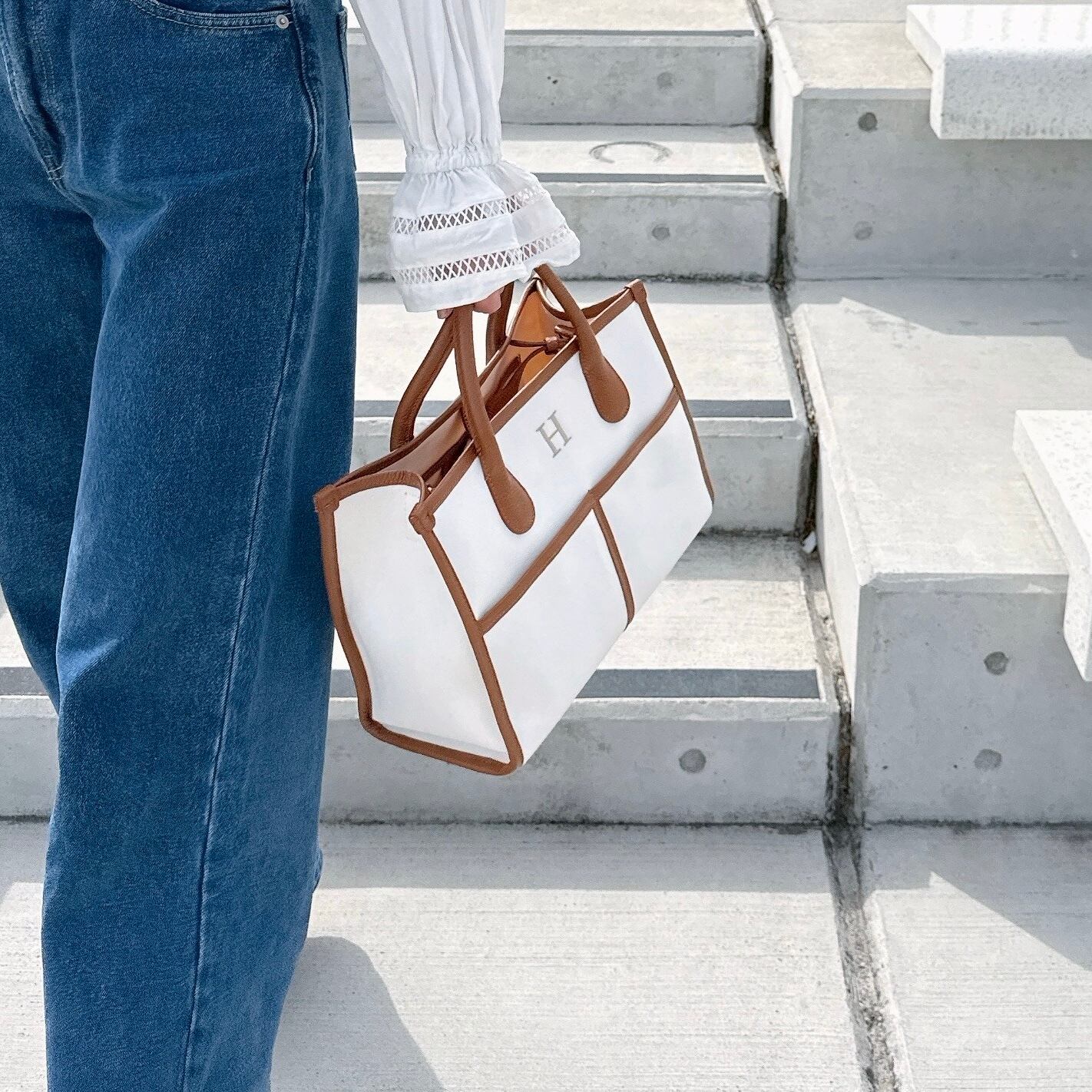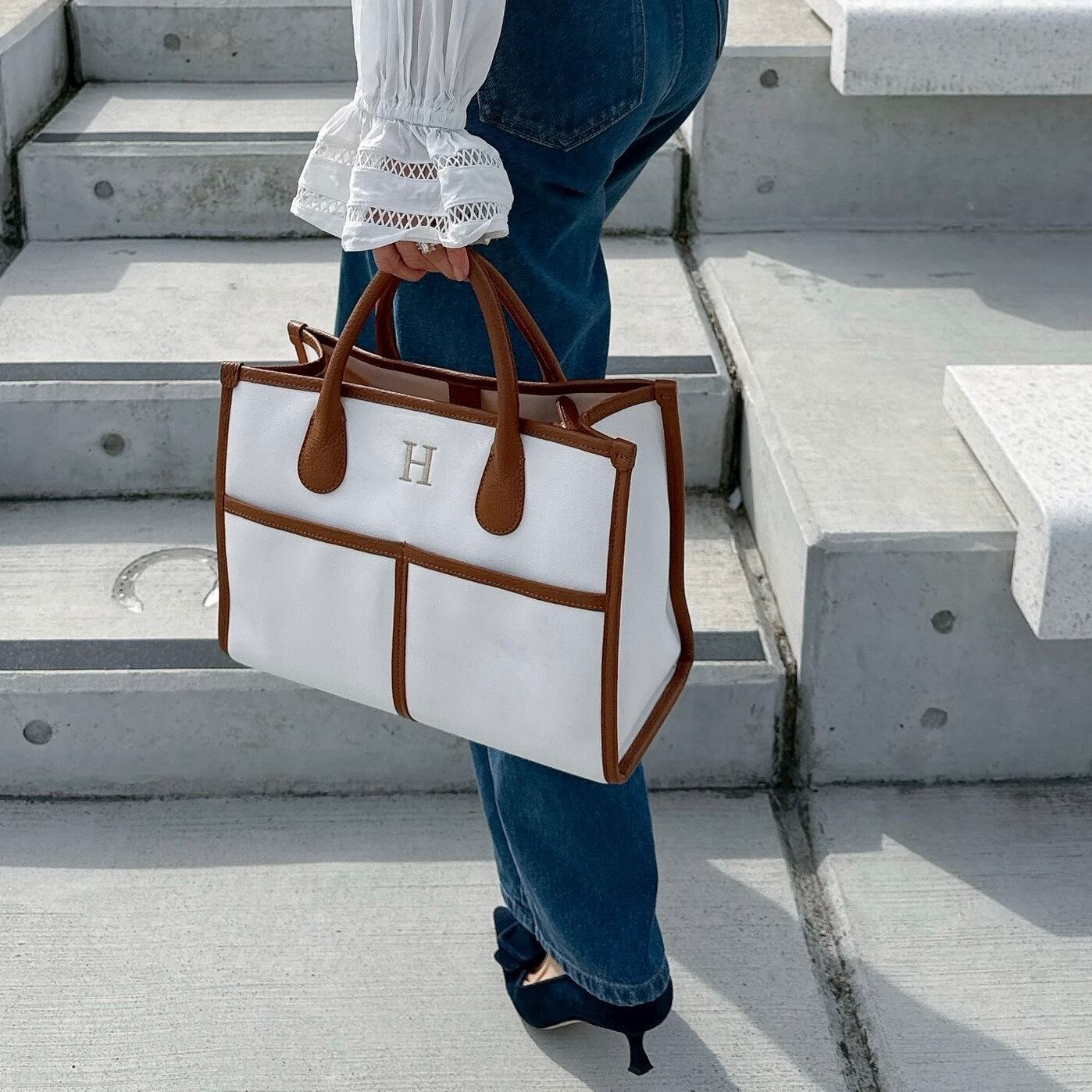 Buddy. canvas bag medium【WHT×BRN】